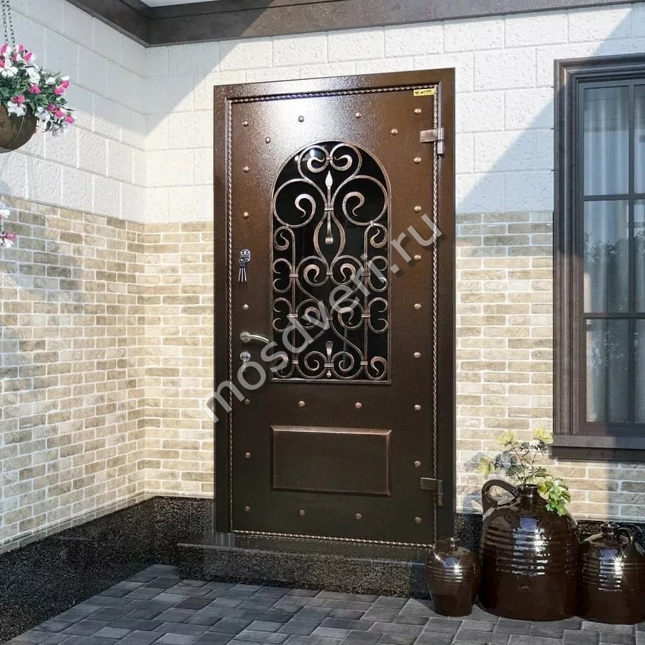 Входные двери со стеклом и ковкой в Каякенте